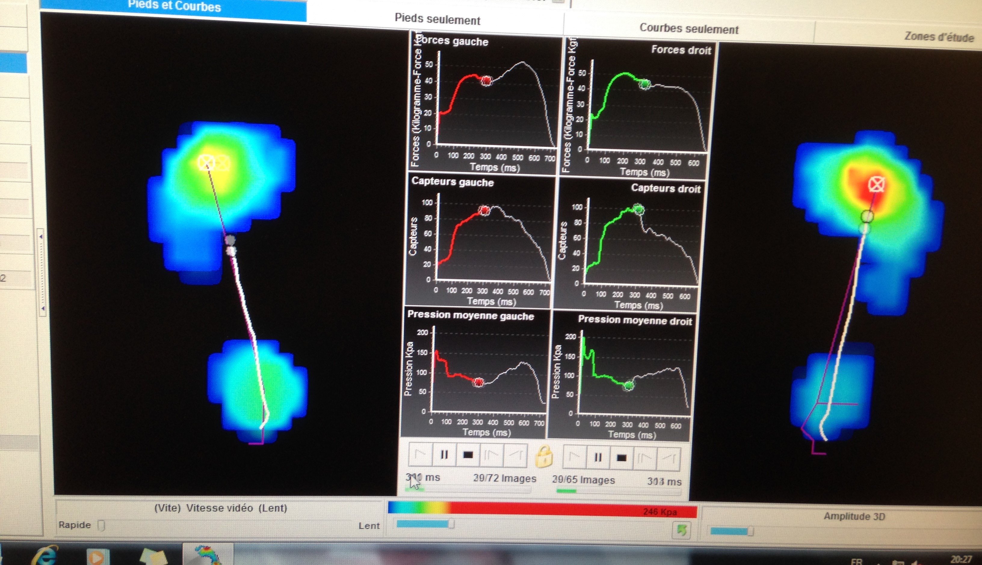 Il s’agit d’apprécier les conséquences d’une ou plusieurs dysfonctions sur la biomécanique générale de la marche, de la course ou d’un geste sportif précis. Nous avons la chance d’être équipé d’outils numériques et de technologies permettant de quantifier les conséquences, de suivre leurs évolutions dans le temps et de paramétrer et mesurer l’efficacité de nos semelles.