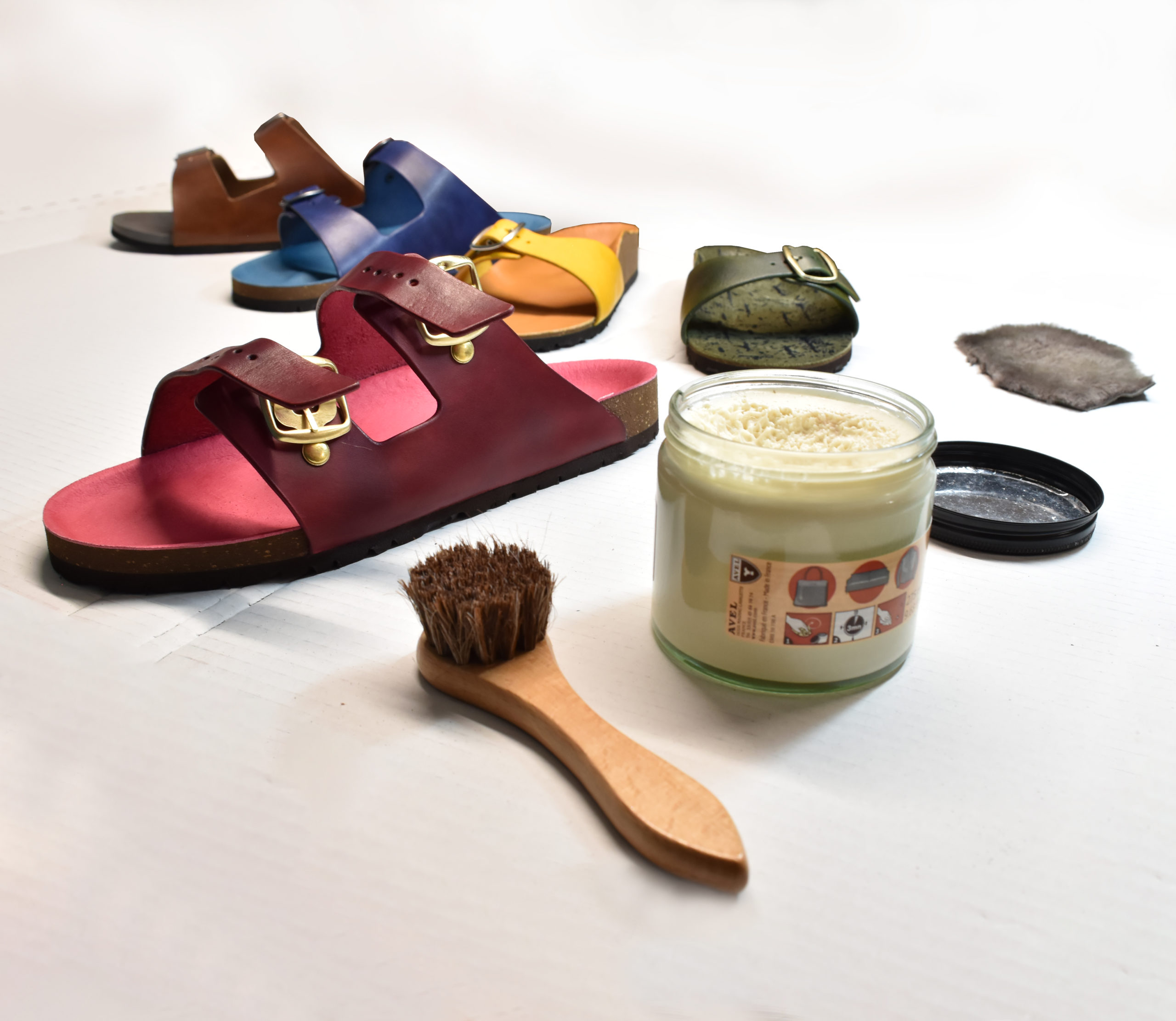Le cuir utilisé pour la fabrication des sandales est sélectionné par Sébastien Monternot, notre cordonnier partenaire. Il s’agit du collet de vache refendu (partie noble du cuir) avec tannage végétal naturel.