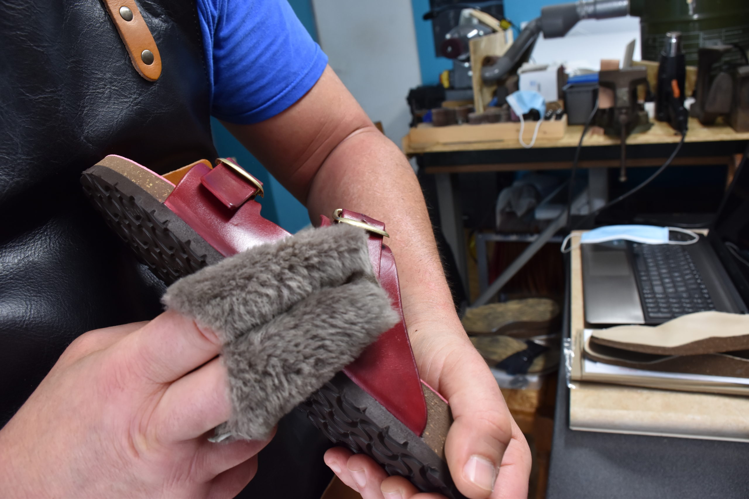 La fabrication des semelles se fait en interne au cabinet par votre podologue, nous n’utilisons pas de semelles toutes faites. La sandale est entièrement fabriquée par notre cordonnier partenaire, Sébastien Monternot. Le cuir utilisé est de qualité, sélectionné par ses soins (partie noble du cuir et tannage végétal naturel). Les produits utilisés pour la fabrication de la sandale sont naturels et français (teinture française à base aqueuse, cirage à base de cire d’abeille et d’huile de vison).